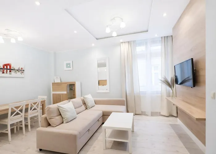Daire, Orman Operası'a 25 dakikalık, Crooked House'a 7 dakikalık yürüme mesafesindedir. Bu tesis, şehir merkezine 1 km'den daha az bir mesafededir. Church of the Assumption of the Blessed Virgin Mary ise yürüme mesafesindedir. Midden-Europese mutfağı sunan Bursztyn, bu daireye 350 metre uzaklıktadır. Sopot İskelesi'dan kısa bir sürüş mesafesindedir.